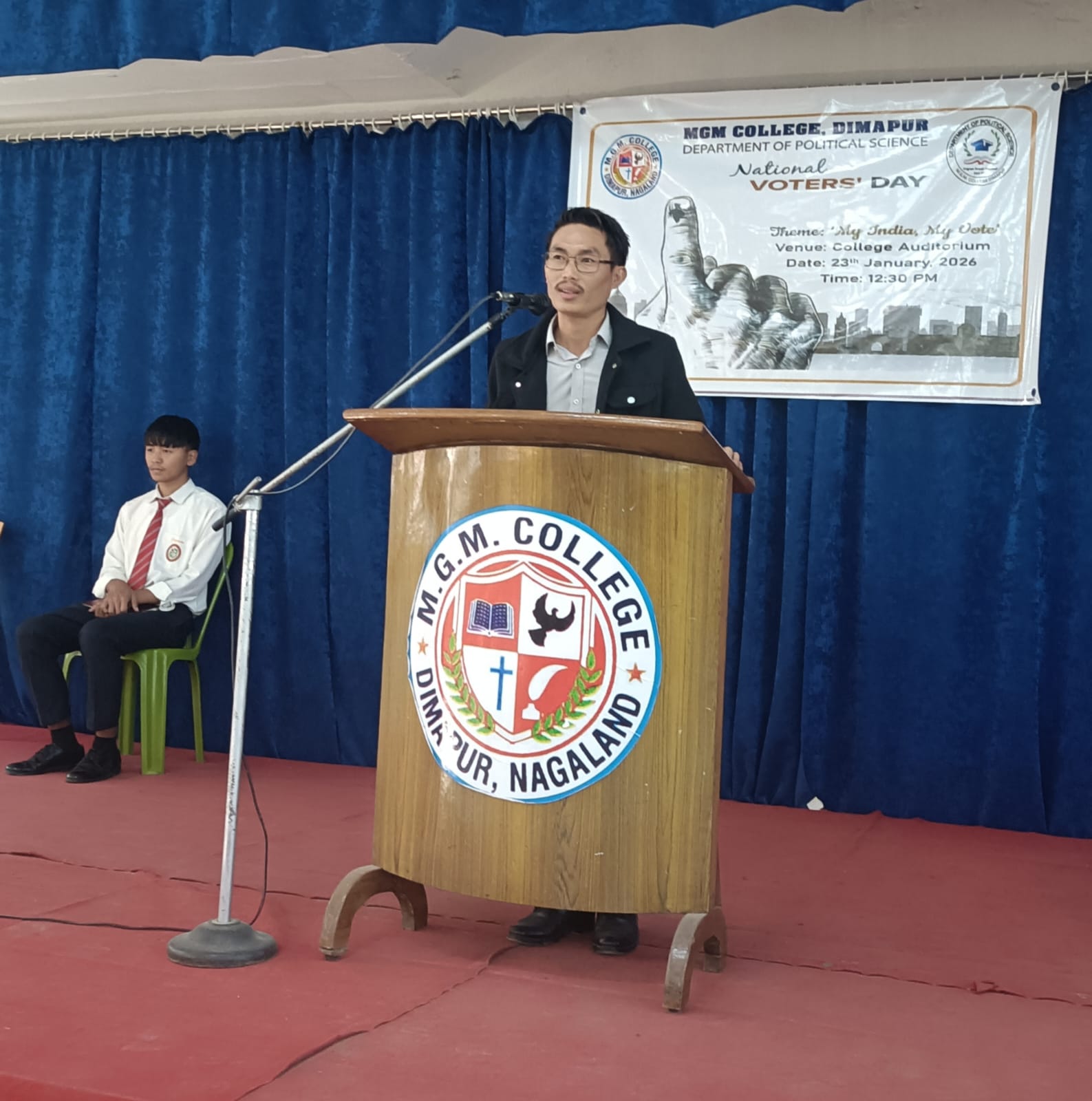 On this occasion, Mr. Kailang Phon, Assistant Professor, Department of Political Science, delivered an insightful and informative lecture highlighting the history, significance, and objectives of National Voters’ Day. He elaborated on why the day is celebrated in India, the importance of voting in a democracy, and the need to create awareness among citizens, especially young voters. Mr. Phon emphasized that the primary objective of celebrating National Voters’ Day is to instill a sense of responsibility among staff and students to participate actively in the electoral process and thereby strengthen democratic values. He encouraged students to exercise their fundamental right to vote and become responsible and informed citizens of the nation.